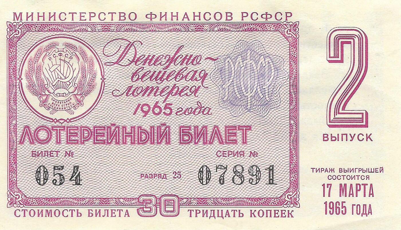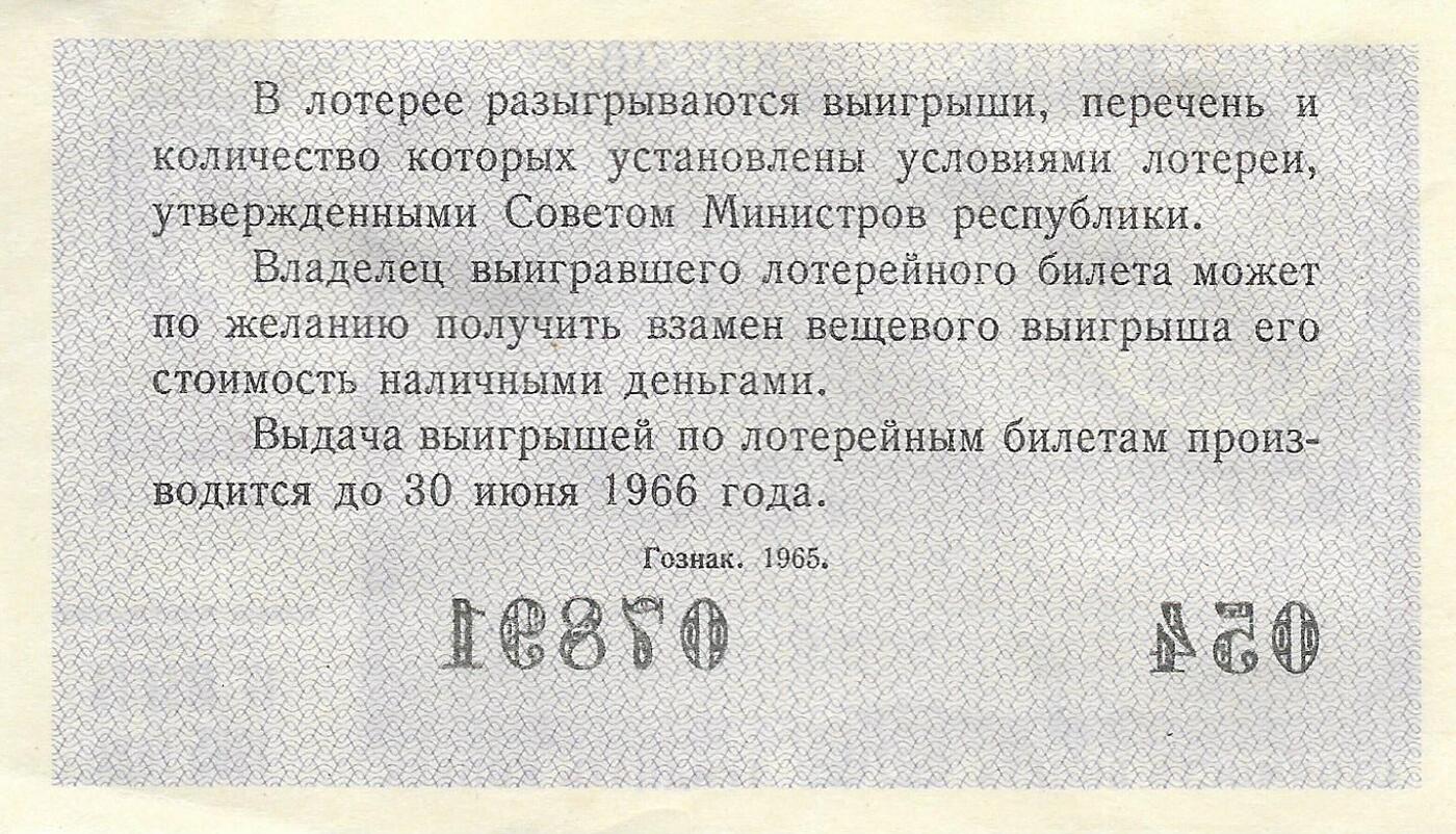 Билет денежно-вещевой лотереи 1965 г. 2 выпуск.