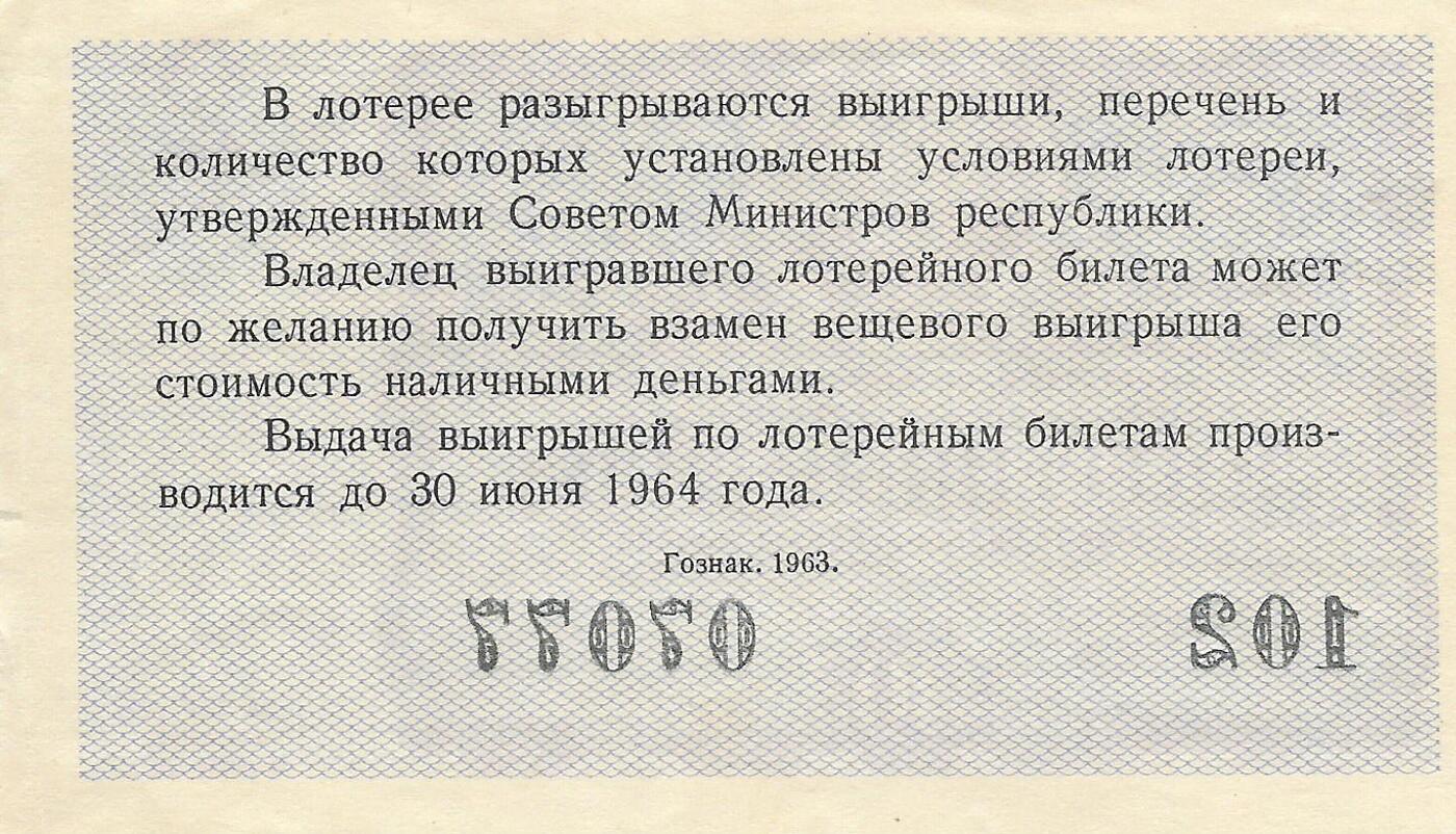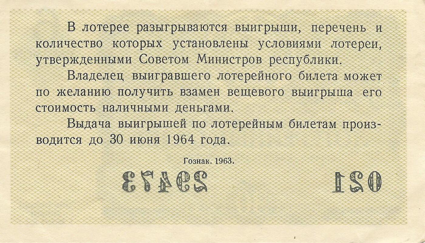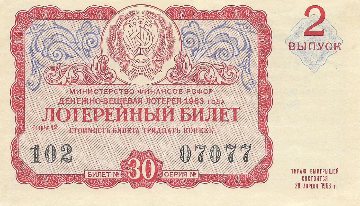 Лотерейный билет денежно-вещевой лотереи 1963 г. 2 выпуск.