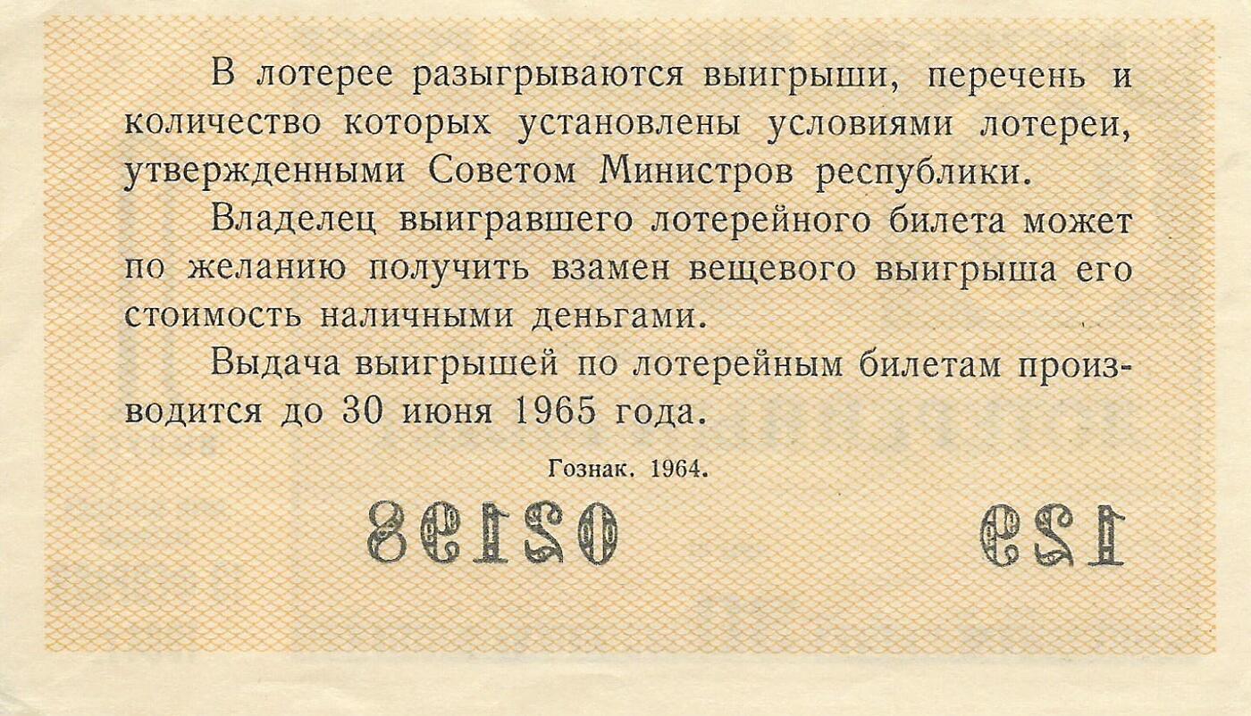 Лотерейный билет денежно-вещевой лотереи 1964 г. 1 выпуск.