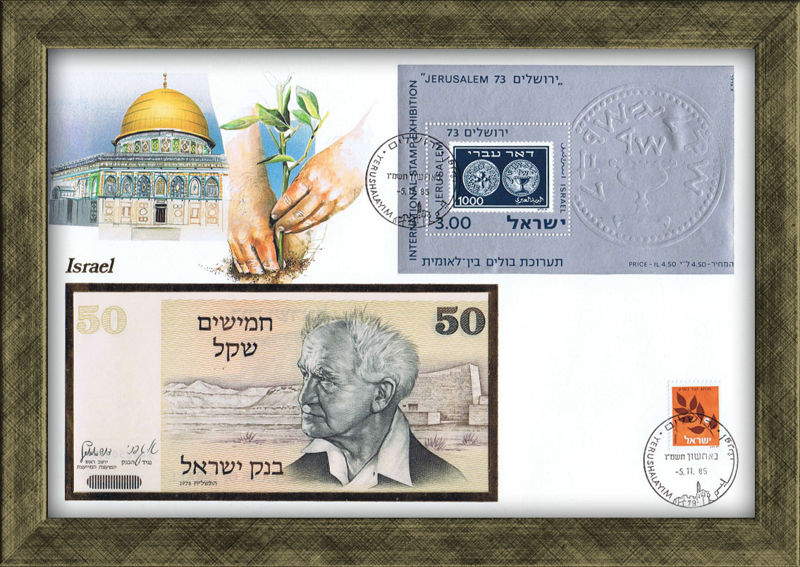 Израиль: купюра, конверт, марки со спец. гашением. Коллекционный выпуск