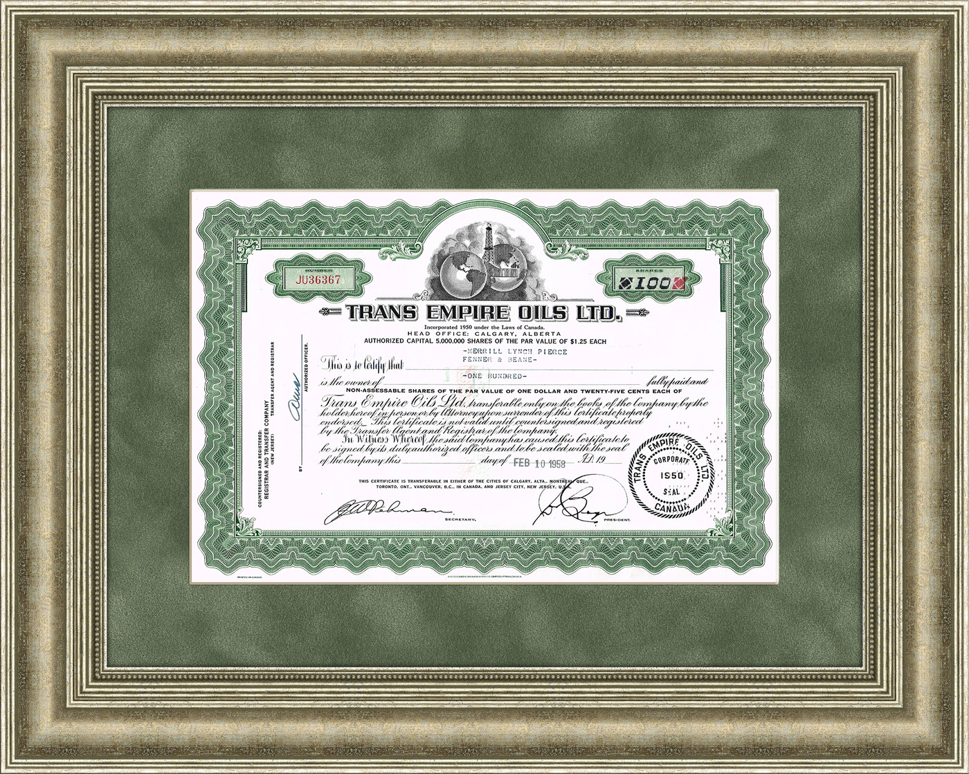 Нефтяная компания Trans-Empire Oils ltd, сертификат