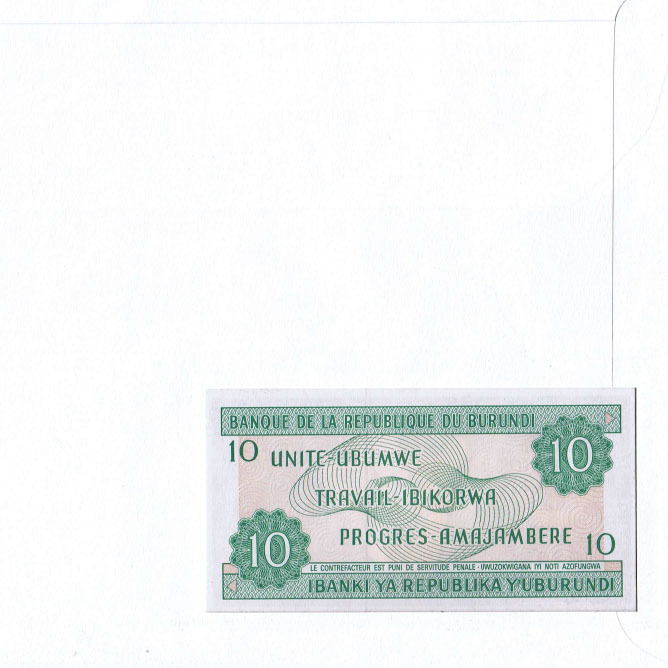 Бурунди: купюра, конверт, марки со спец. гашением. Коллекционный выпуск