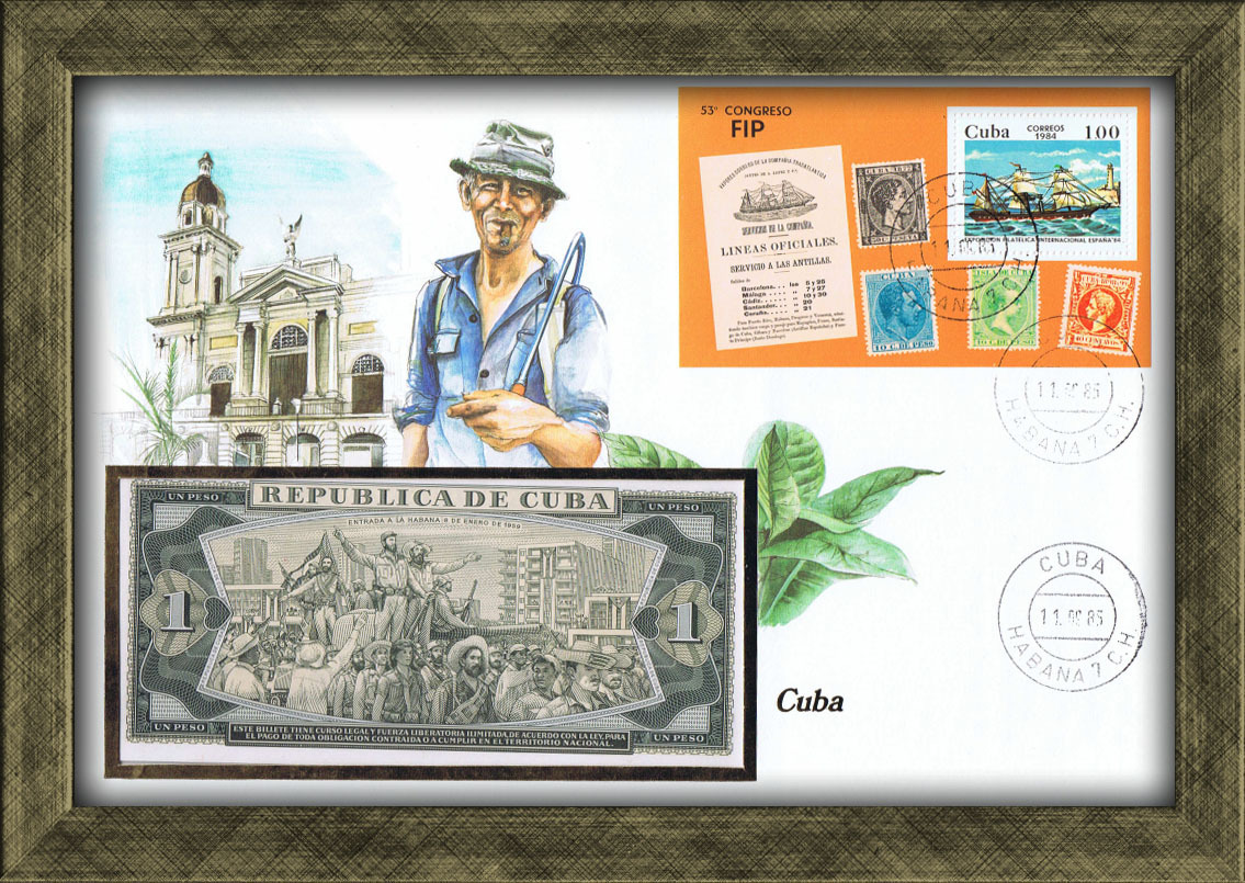 Куба: купюра, конверт, марки со спец. гашением. Коллекционный выпуск
