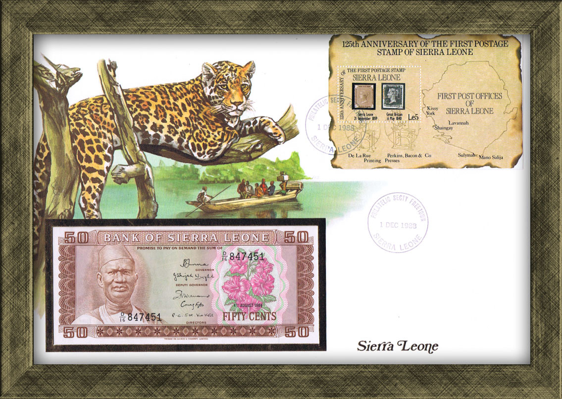 Сьерра-Леоне: купюра, конверт, марки со спец. гашением. Коллекционный выпуск
