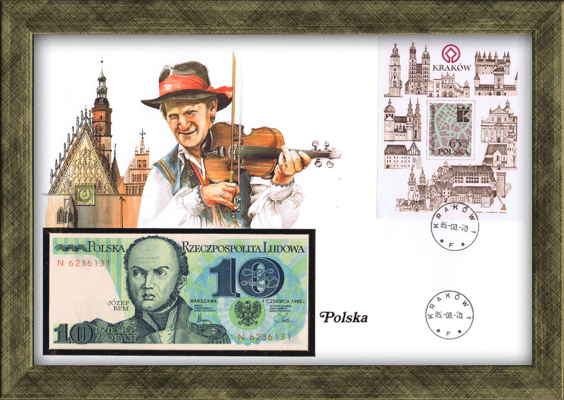 Польша: купюра, конверт, марки со спец. гашением. Коллекционный выпуск