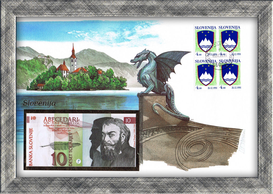 Словения: купюра, конверт, марки со спец. гашением. Коллекционный выпуск