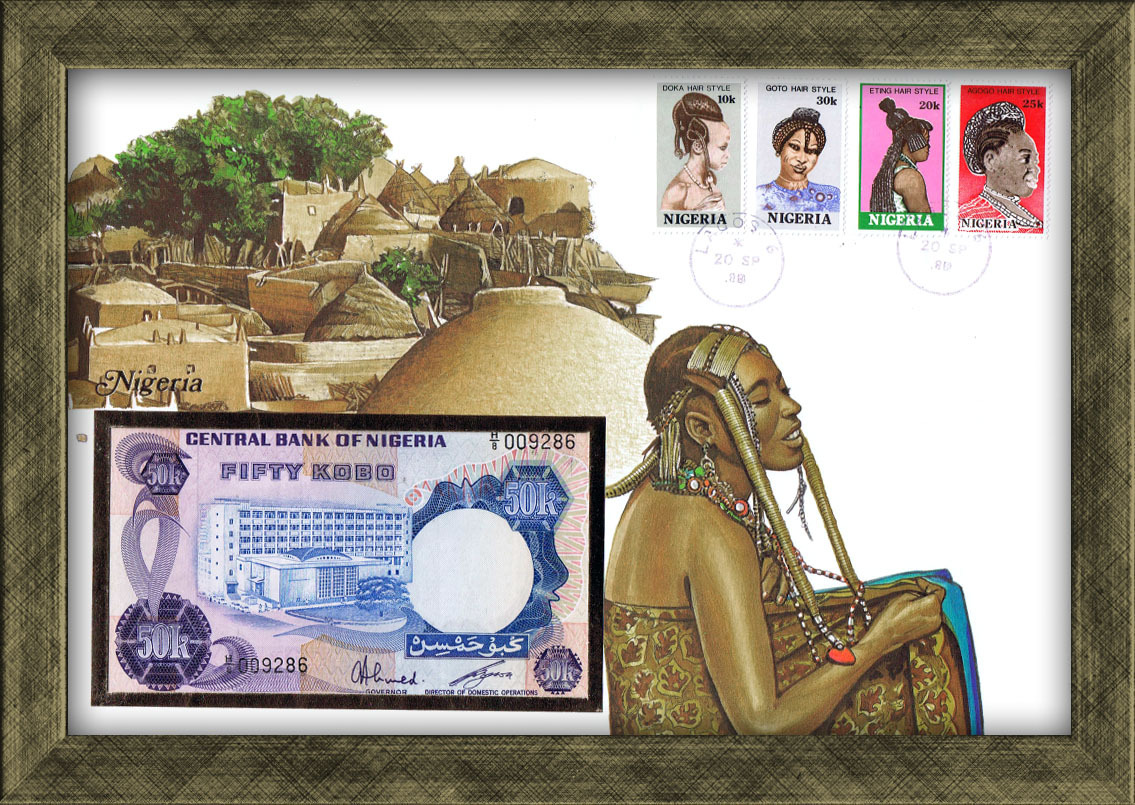 Нигерия: купюра, конверт, марки со спец.гашением. Коллекционный выпуск