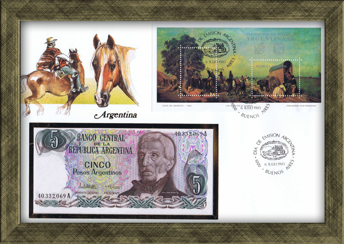 Аргентина: купюра, конверт, марки со спец. гашением. Коллекционный выпуск