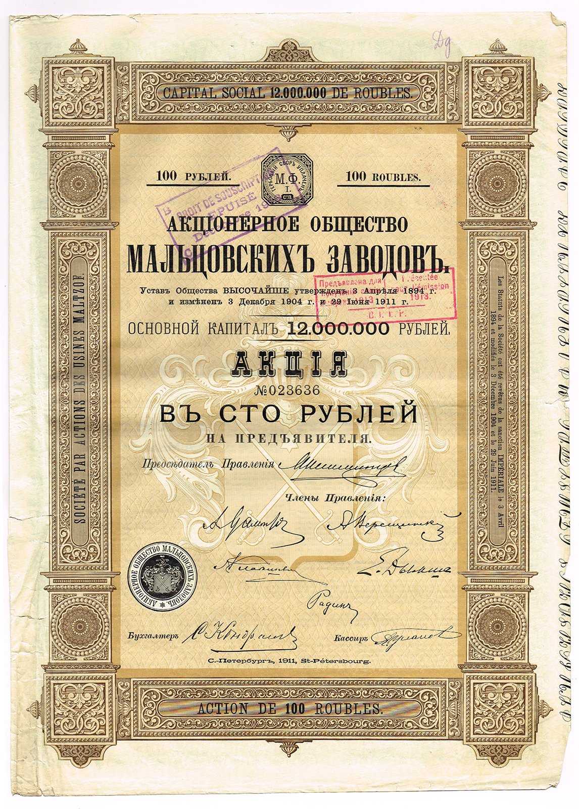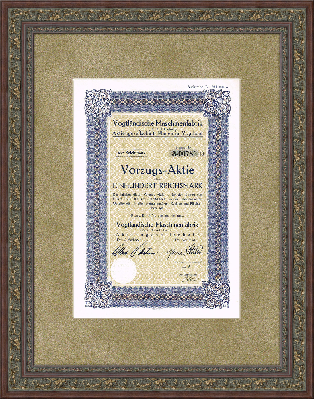 Машиностроительная компания Vogtlandische Maschinenfabrik, привилегированная акция в 100 рейхсмарок