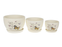 Набор горшков для цветов с поддонами "Бабочки", 3900/2300/1100 мл
