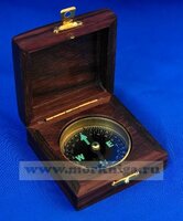 Компас с солнечными часами в деревянном футляре 14/2/2 антик
