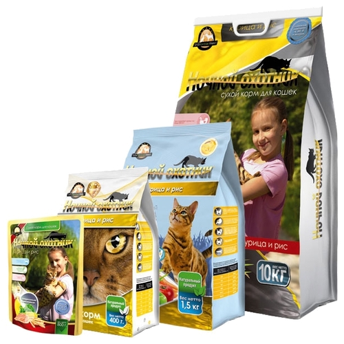 Корм для кошек Ночной охотник Сухой корм для кошек Курица и рис