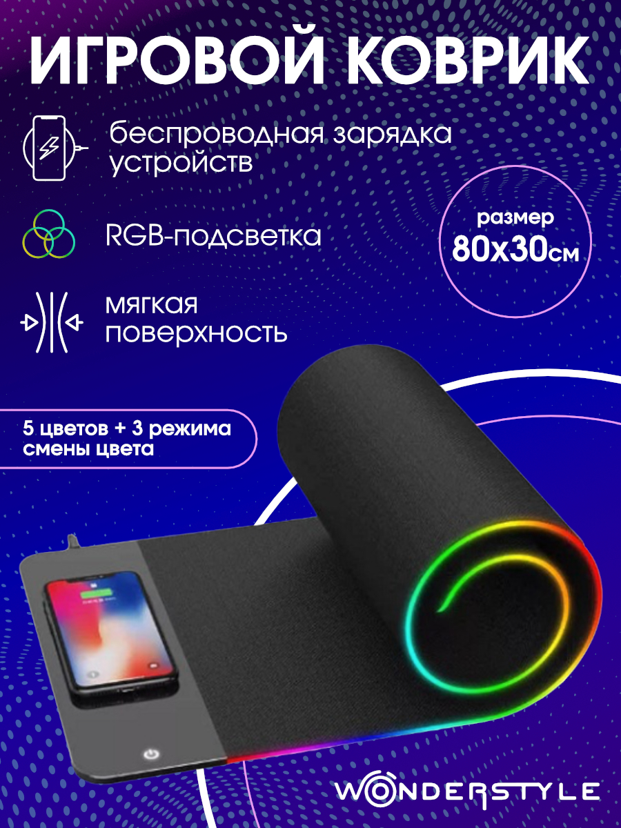 Игровой коврик для мыши Wonderstyle Wireless Charging Mouse Pad, черный