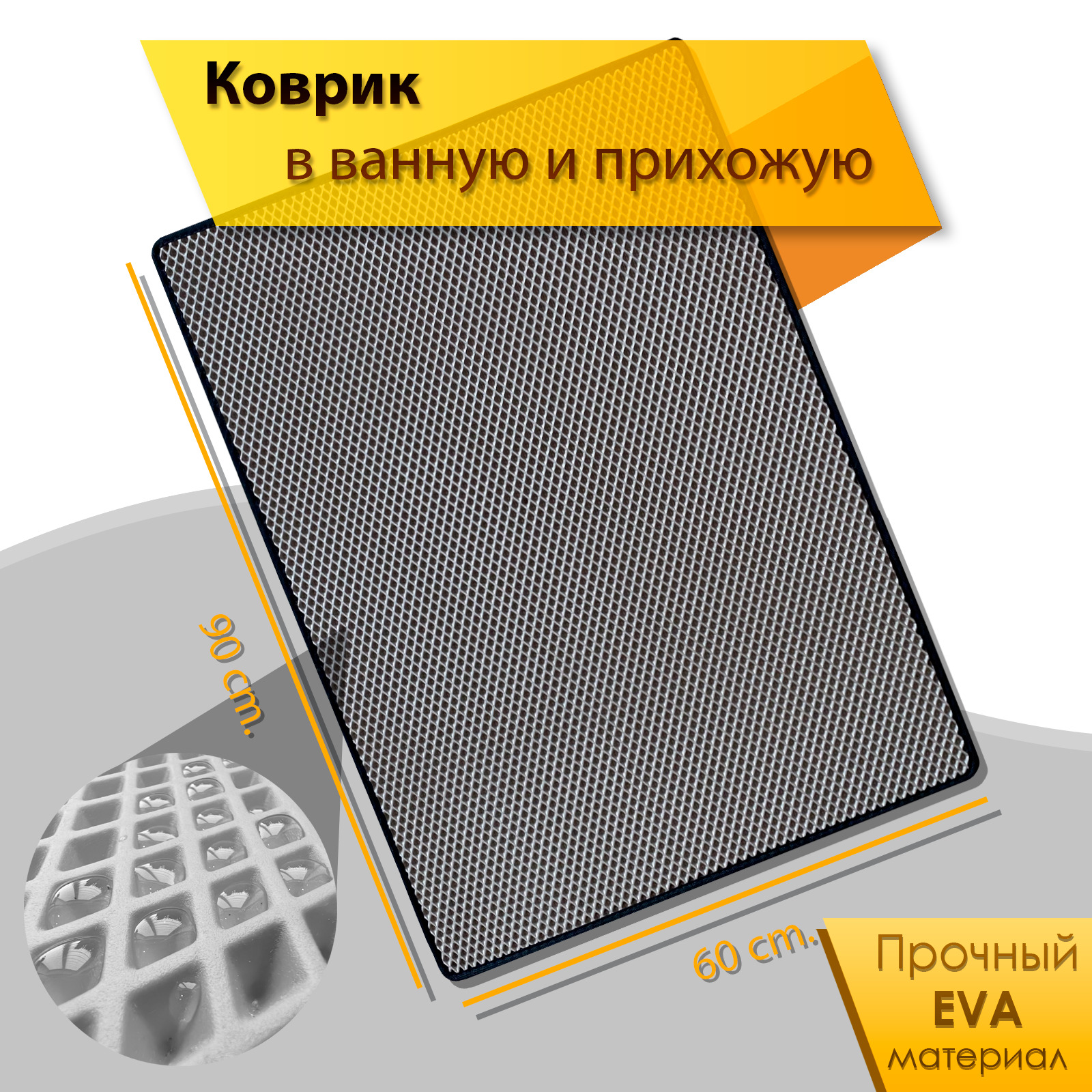 Коврик ЭВА ЕВА в прихожую и ванную 60 x 90 см Ромб Серый с Чёрным кантом