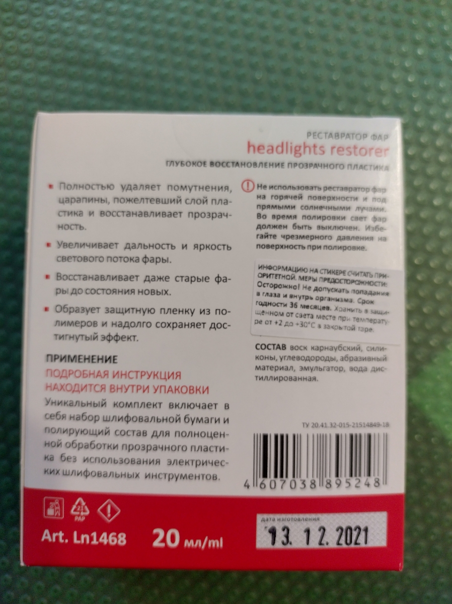Полироль-реставратор фар LAVR, 20 мл / Ln1468