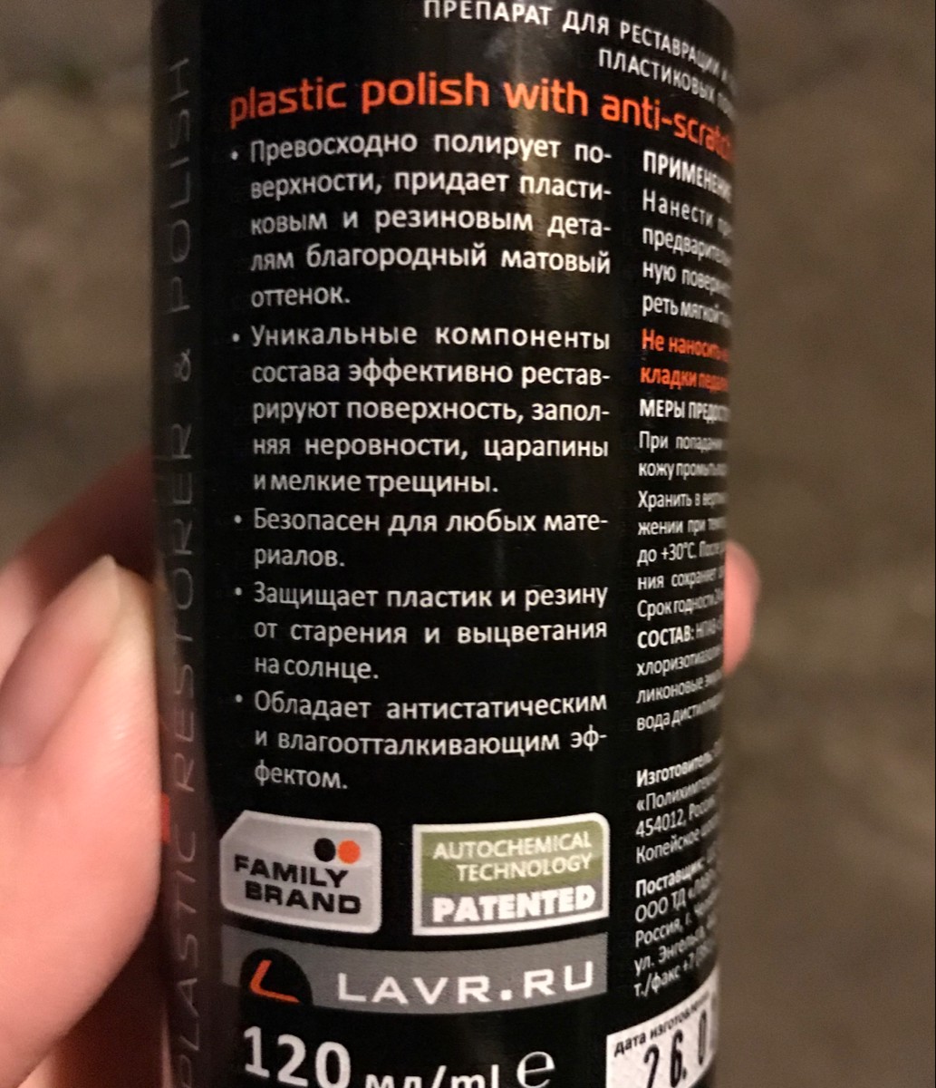 Реставратор-полироль пластика LAVR "Профессиональная формула", 120 мл