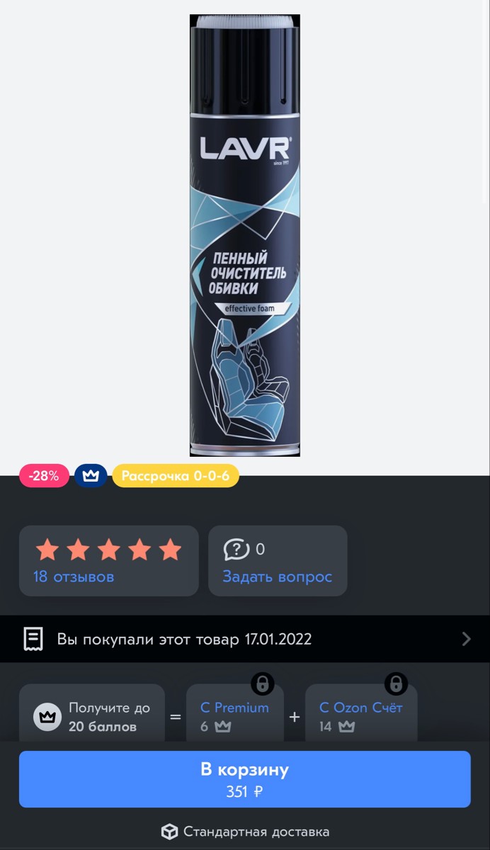 Очиститель обивки пенный 650 мл LAVR (Ln1451)