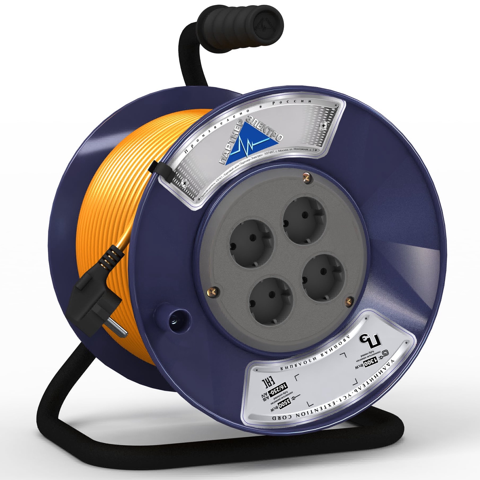 Удлинитель Партнер-Электро PowerLine,УТ-012078,ПВС 3х0,75 ГОСТ,10A,30м,тем-сер.вст.,на пластик.катушке 4 гн.
