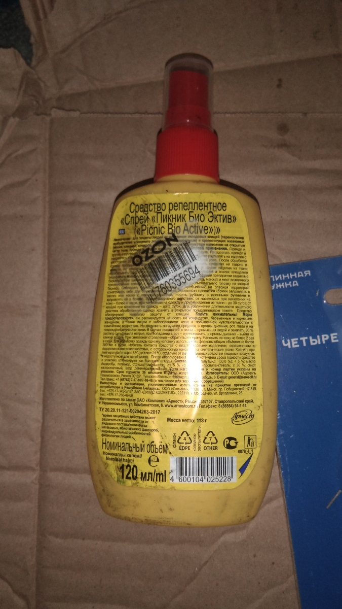 Спрей от комаров, клещей, слепней Пикник Bio Active, 5 часов защиты, 120 мл