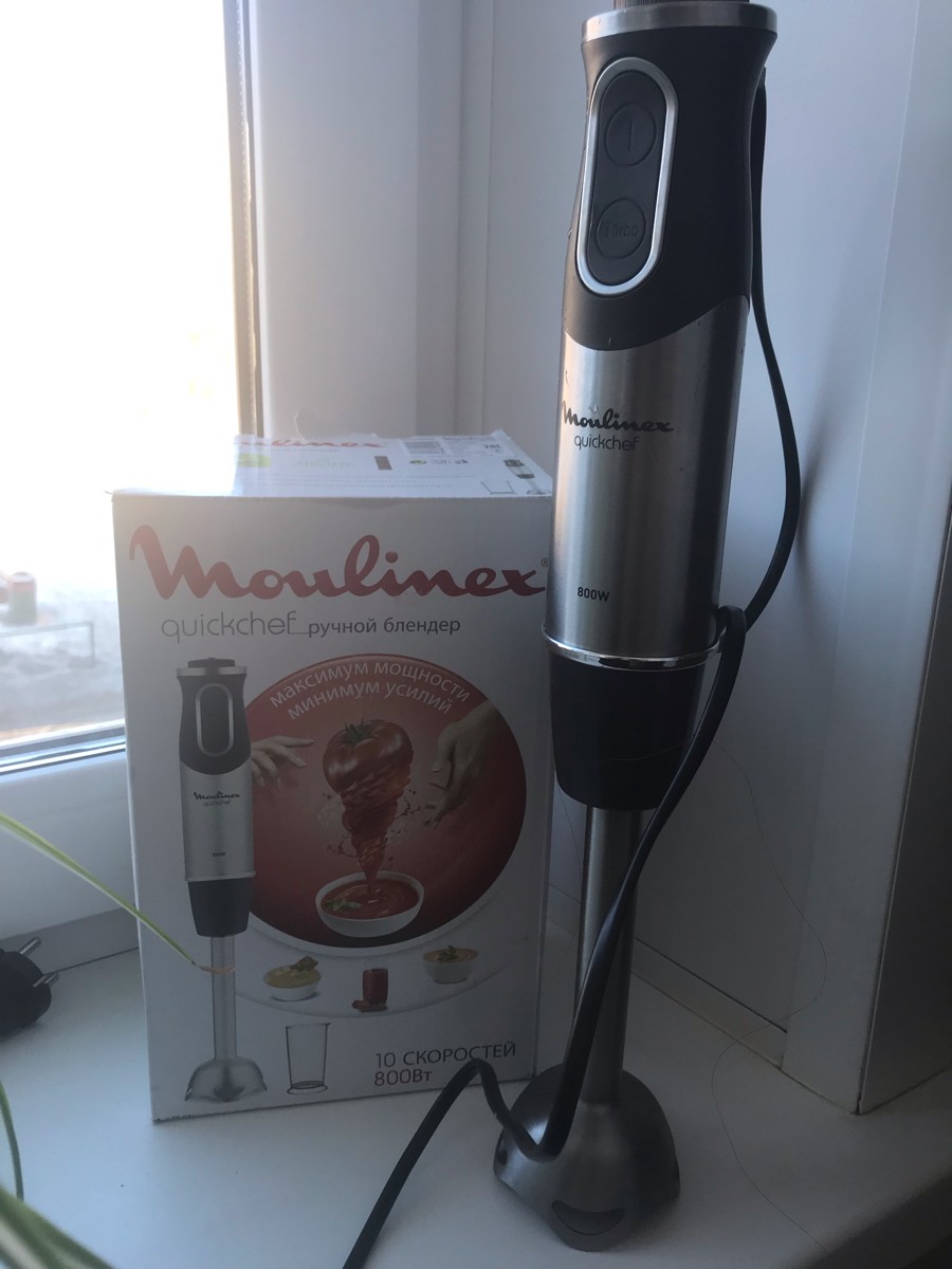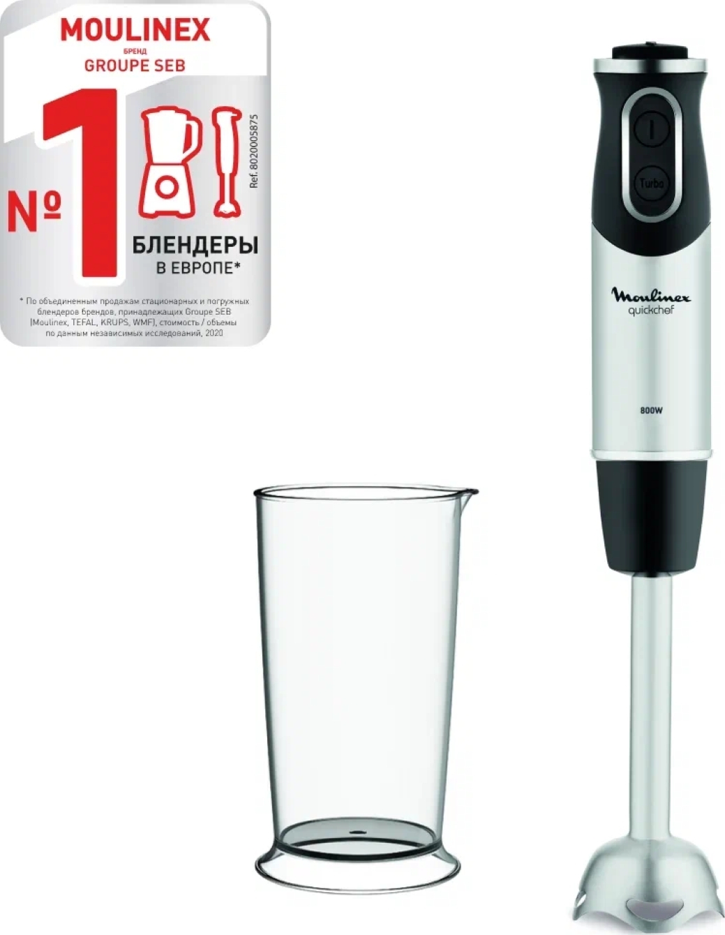 Погружной блендер Moulinex Quickchef с мерным стаканом, серый металлик, черный