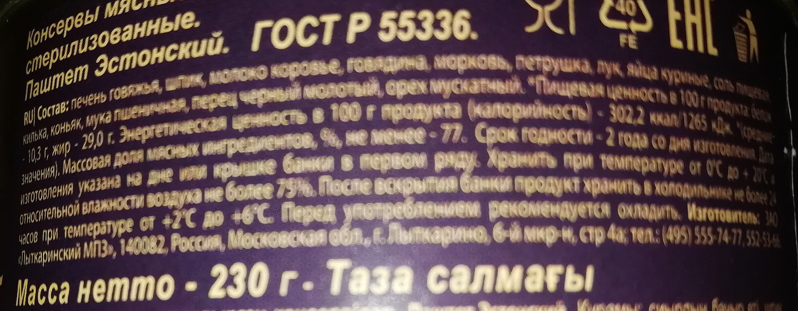 Знаток паштет Эстонский ГОСТ, 230 г