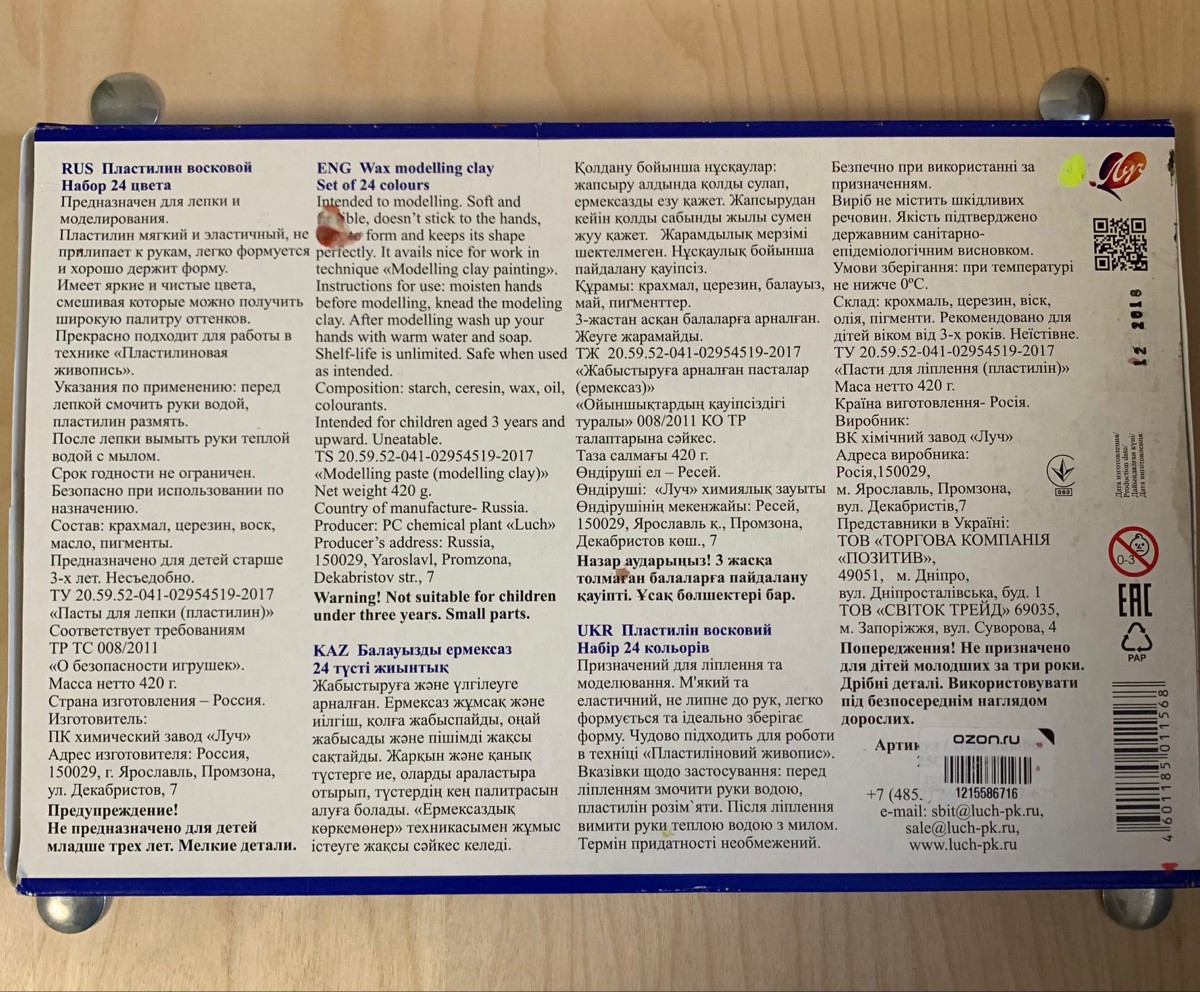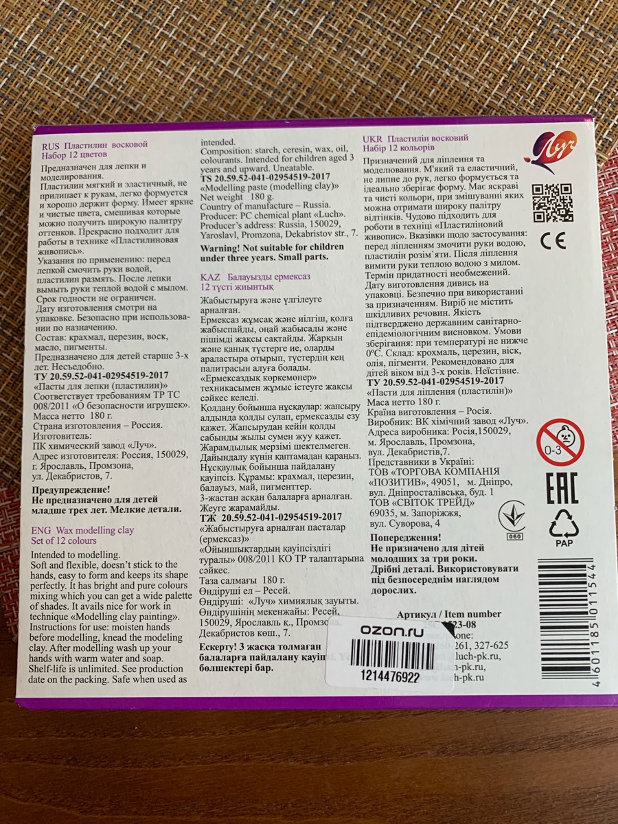 Луч Пластилин восковой Фантазия 12 цветов