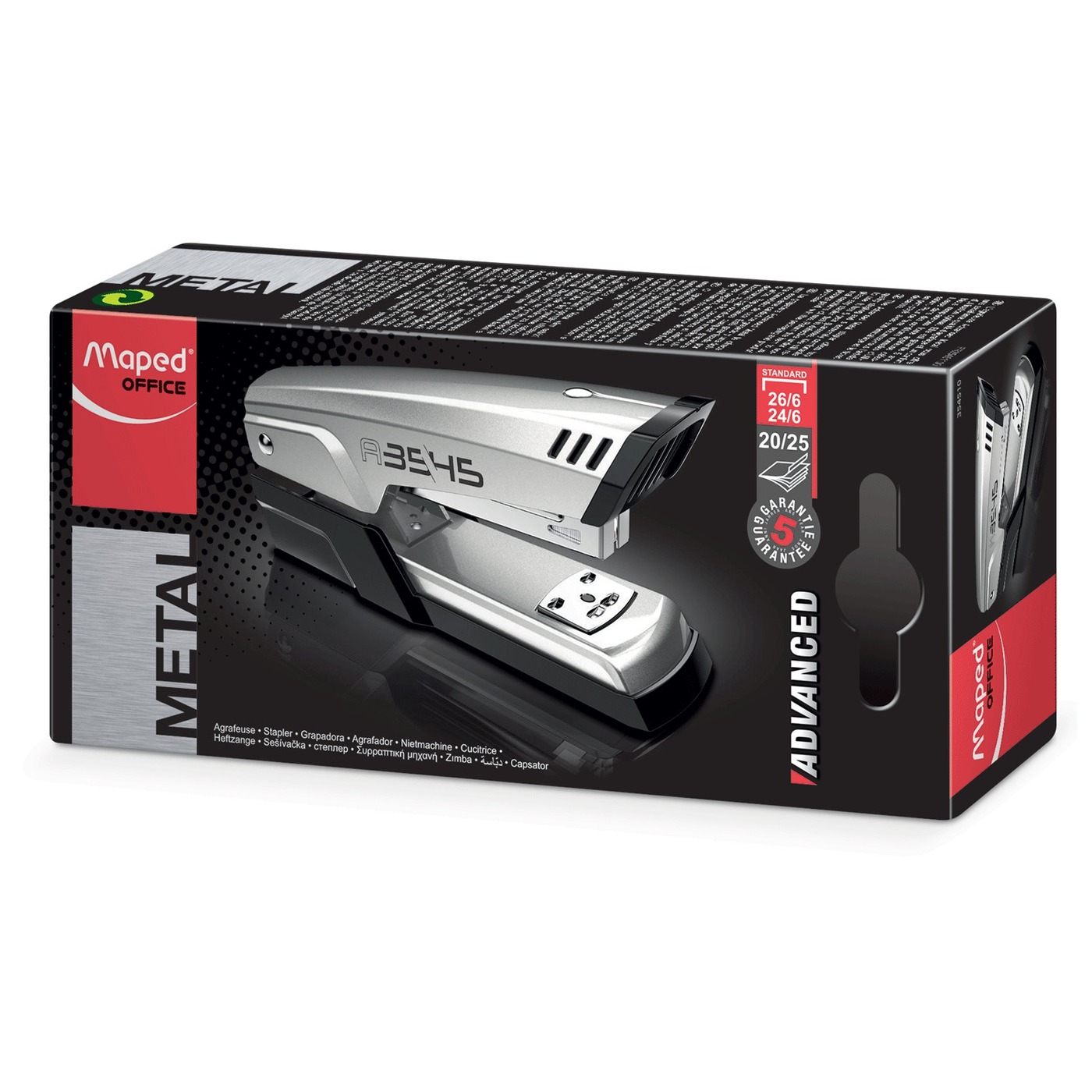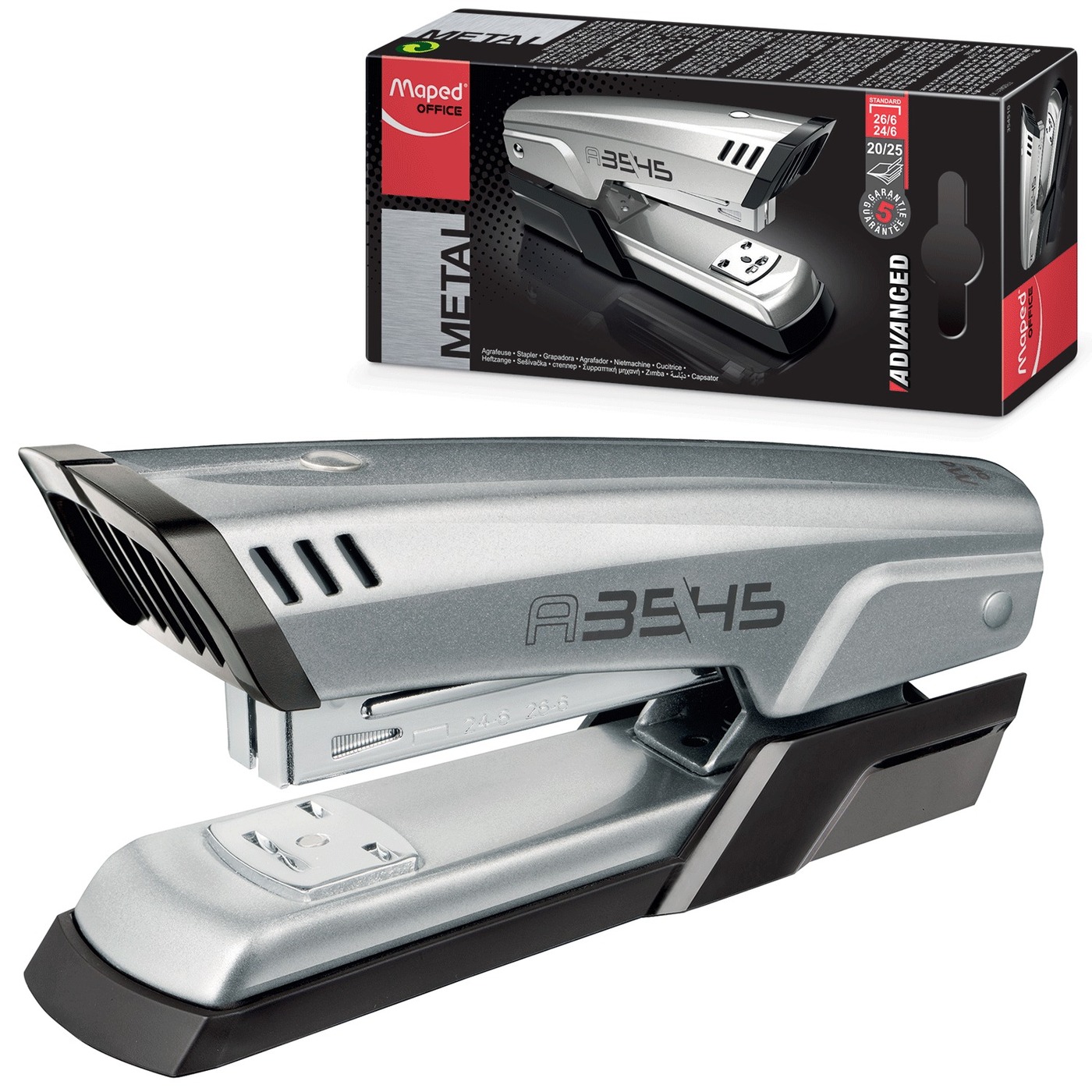 Степлер №24/6, 26/6 Maped Advanced, металлический, до 25 листов, светло-серый, 354510