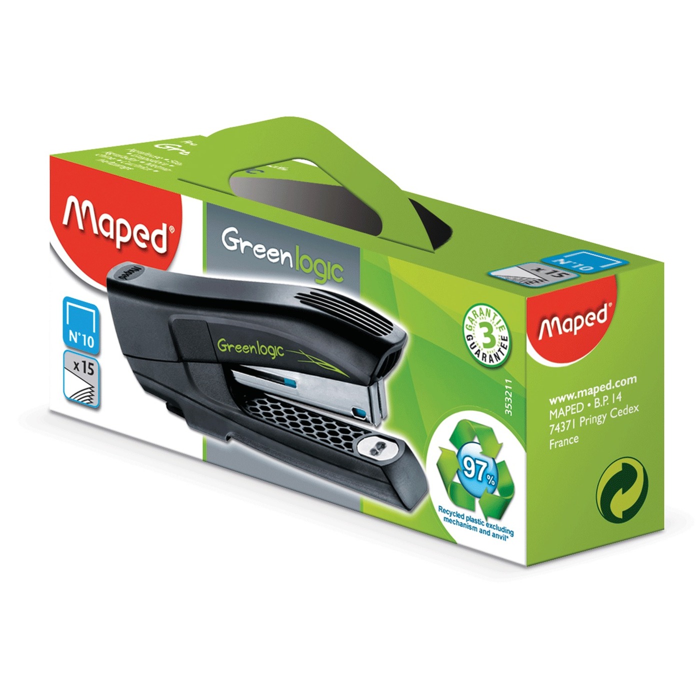 Степлер №10 Maped Greenlogic, до 15 листов, с антистеплером, черный, 353211