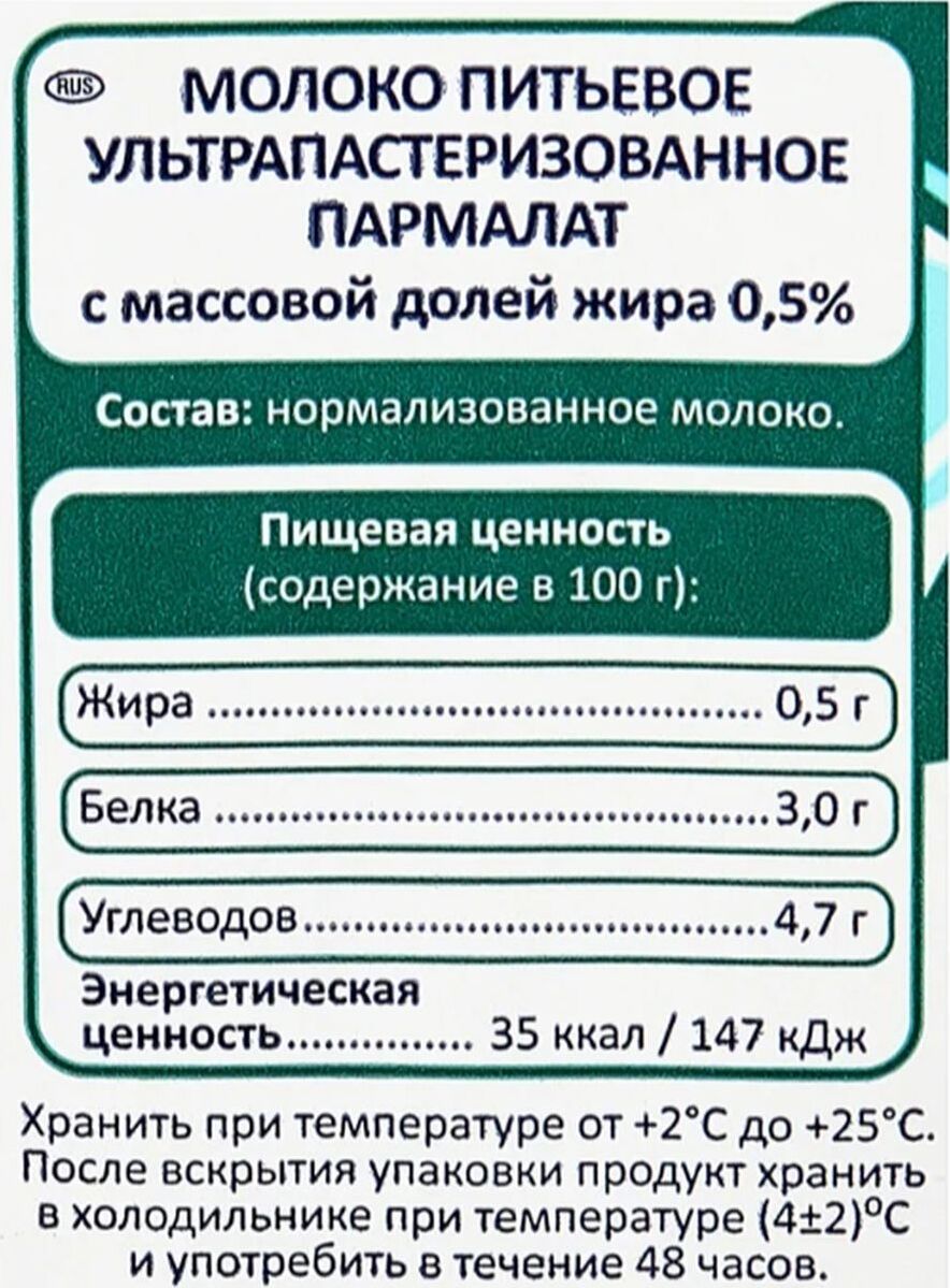Parmalat молоко ультрапастеризованное 0,5%, 1 л