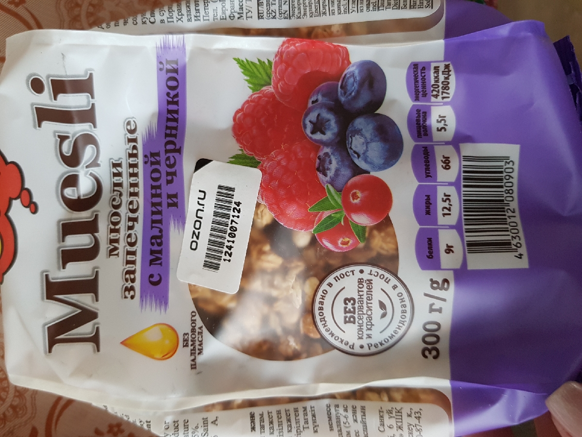Мюсли запеченные с малиной и черникой ОГО!, 300 г