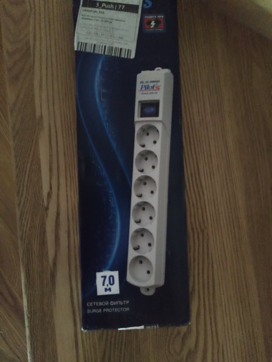 Сетевой фильтр (удлинитель) Pilot S, 6 розеток, 10А, 7м, белый