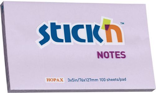 Блок самоклеящийся Stick`n 21405, бумажный,пастель, цвет:сиреневый, 76x127мм, 100 листов, 70г/м2
