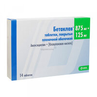 Бетаклав таб. п/о плен. 875мг+125мг № 14
