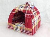 Бобровый дворик Домик лежак для кошек и собак шотландка красная. №1( 39*39*35см)