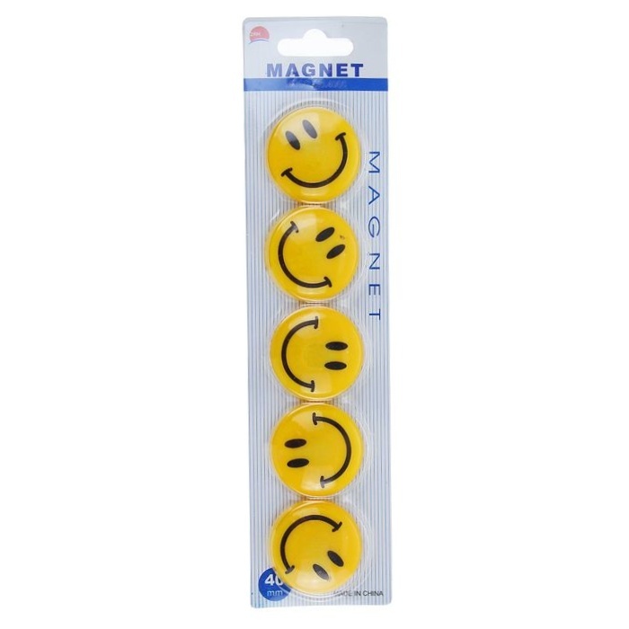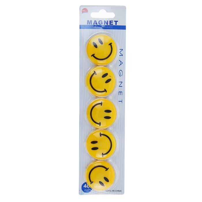 Набор магнитов для доски, 5 штук, "Смайл", d-4 см, на блистере