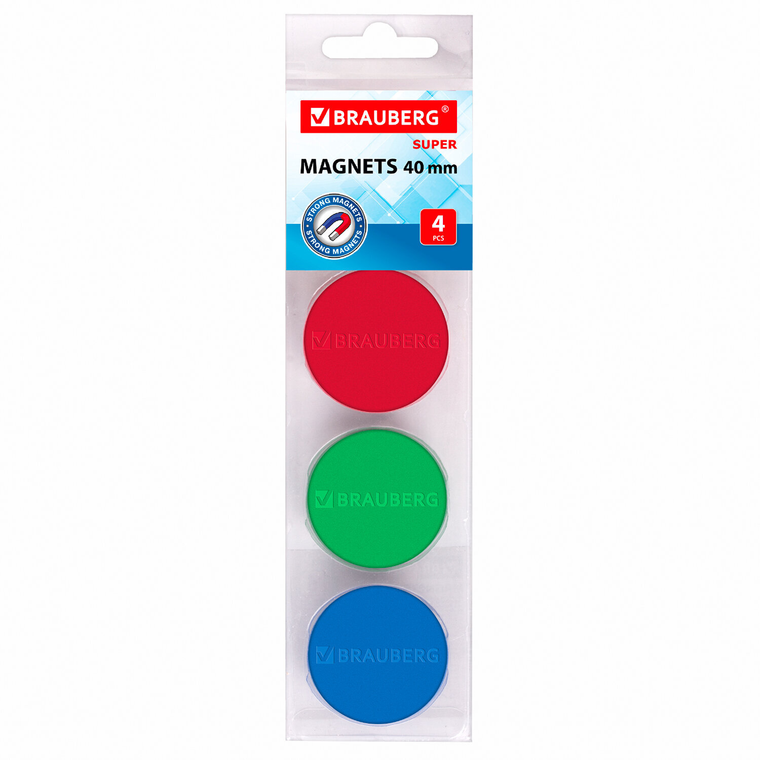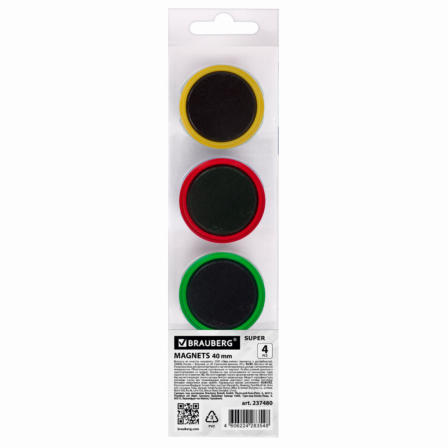 Магниты МОЩНЫЕ 40 мм (БОЛЬШОГО ДИАМЕТРА), НАБОР 4 шт., ассорти, NO NAME SUPER, 237480