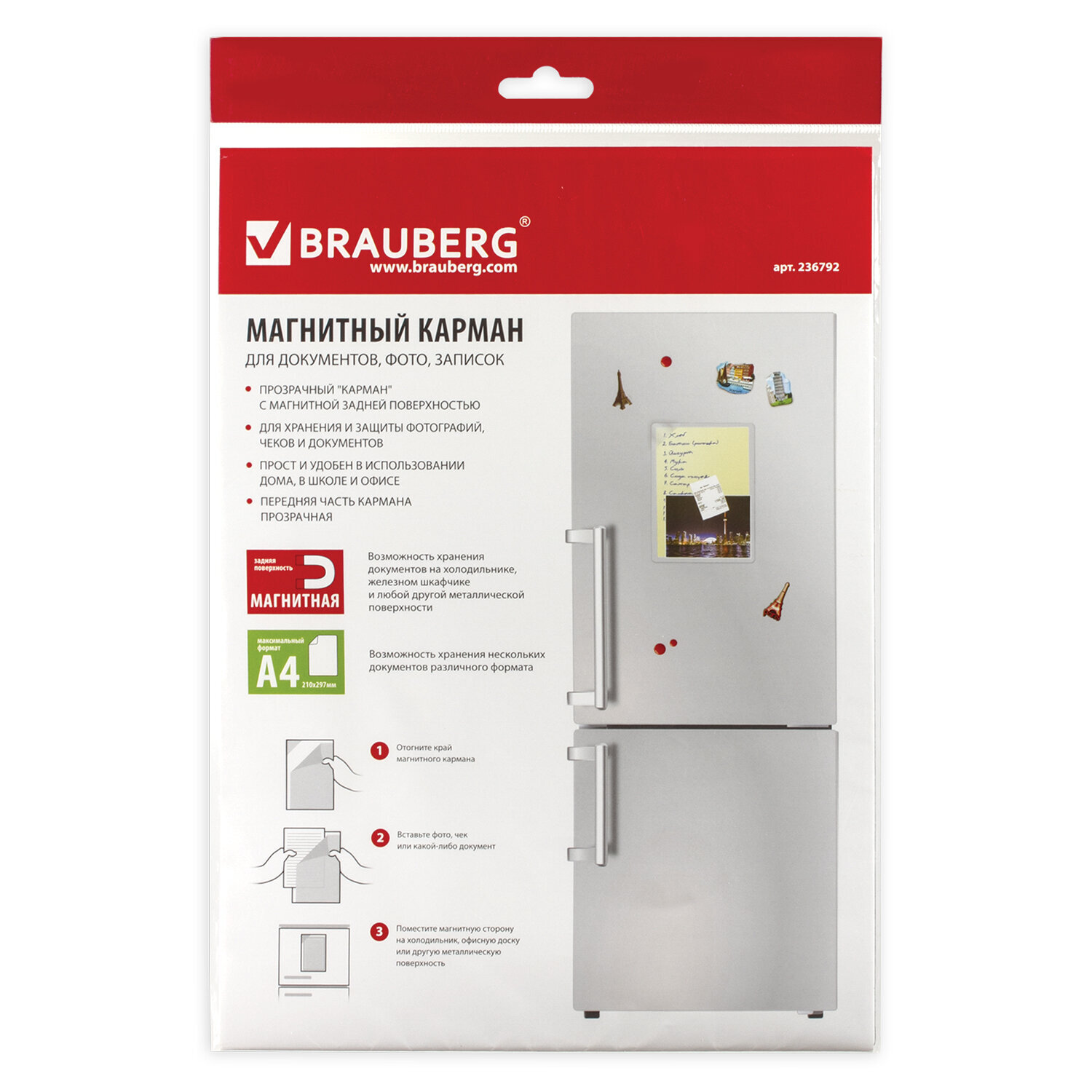 Магнитный карман для документов, фото, записок, формат А4, прозрачный, , 236792