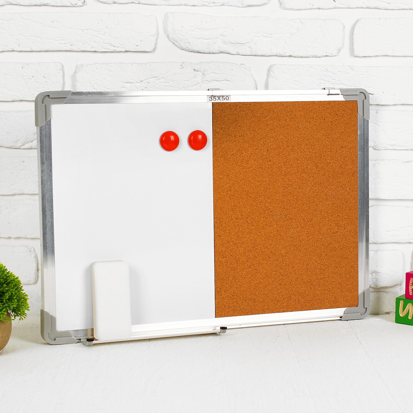 Доска двусторонняя, пробковая и магнитно-маркерная, 50х35 см