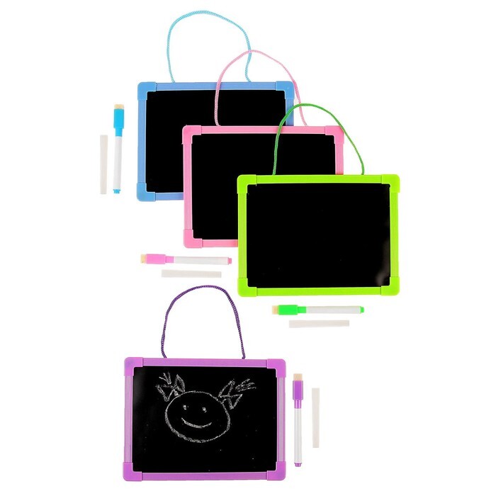 Доска для рисования двухсторонняя картонная, маркер мел, цвета МИКС