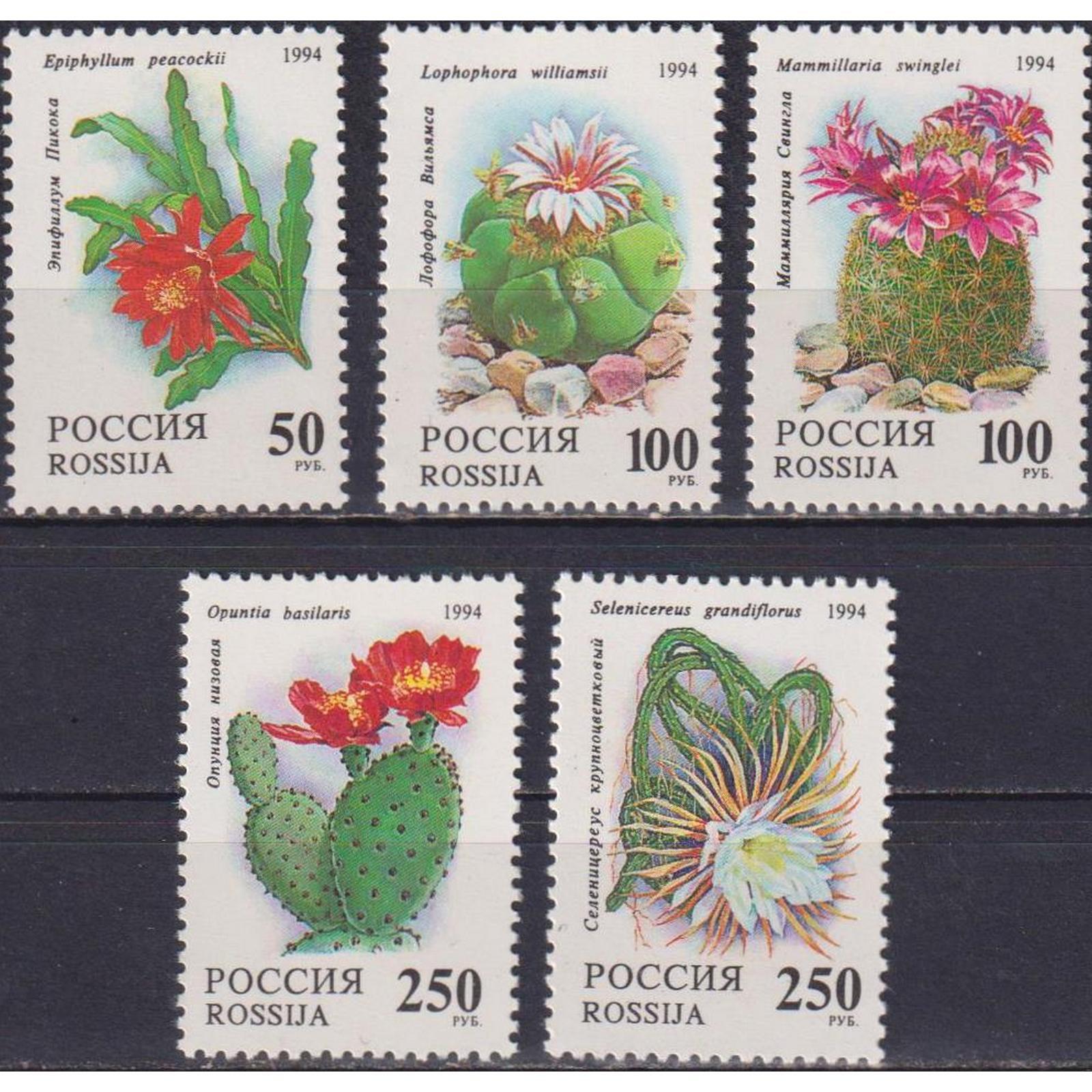 Почтовые марки Россия 1994 г. "Комнатные растения. Кактусы" MNH Цветы, Кактусы