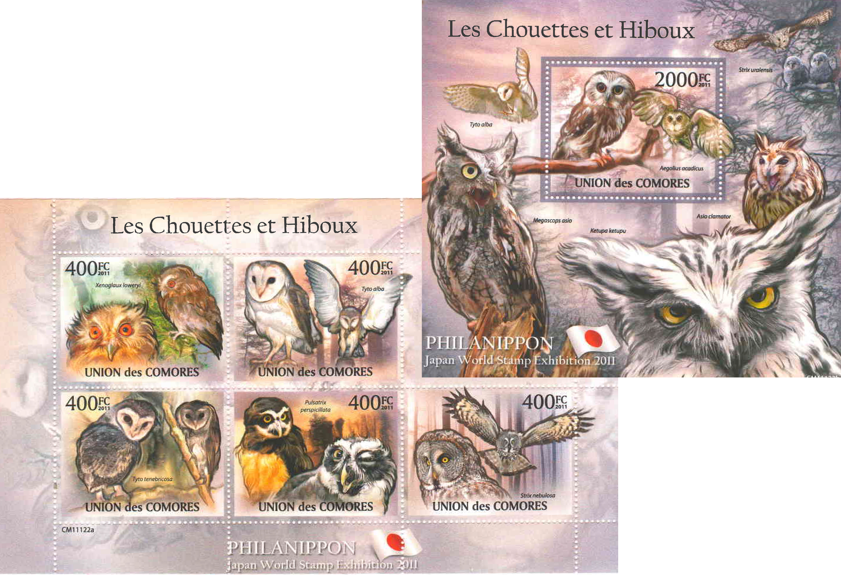 Набор из 2 блоков марок "Совы. Тип 3". Коморские острова, 2011 год
