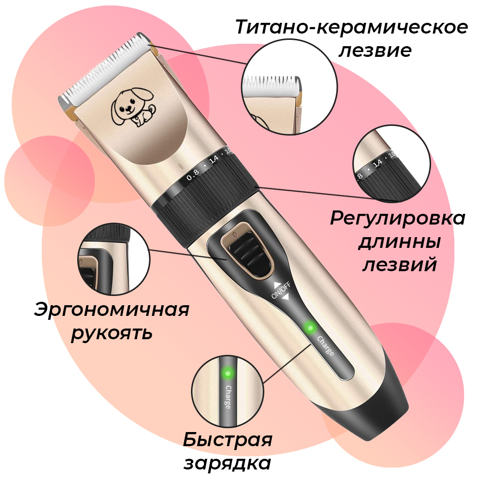 Машинка для стрижки собак и кошек, набор для груминга золотистый