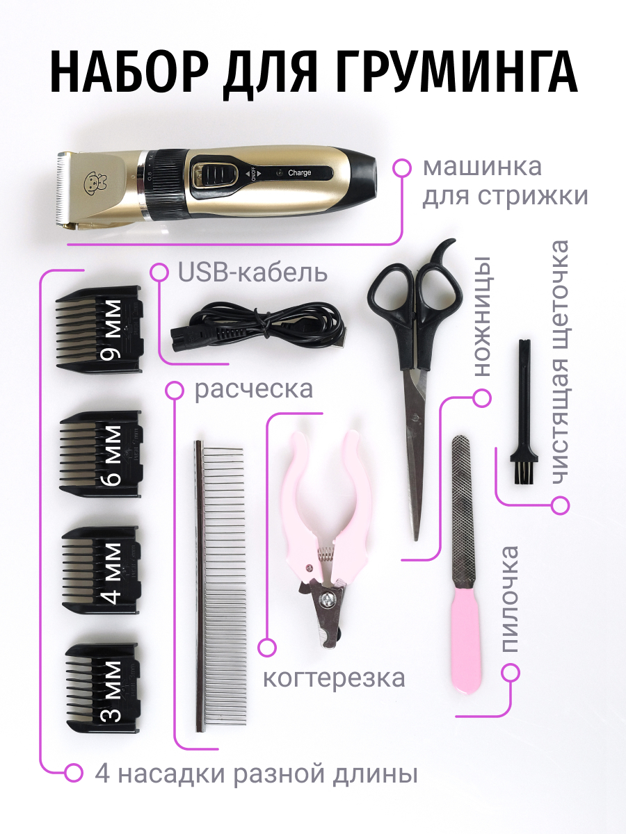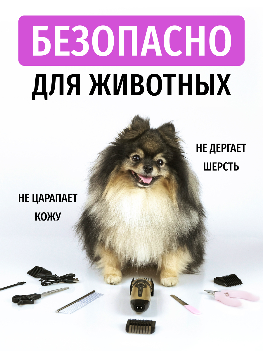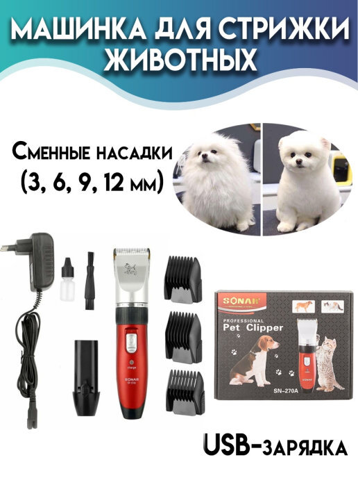 Машинка для стрижки животных 4 насадки / от аккумулятора с usb / для стрижки собак и кошек