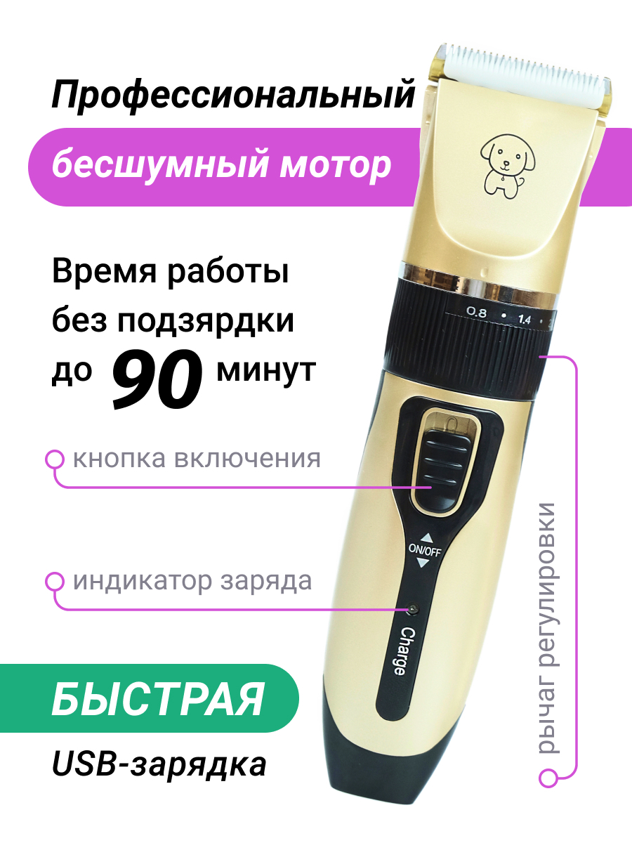 Машинка для стрижки животных 4 насадки / от аккумулятора с usb / для стрижки собак и кошек