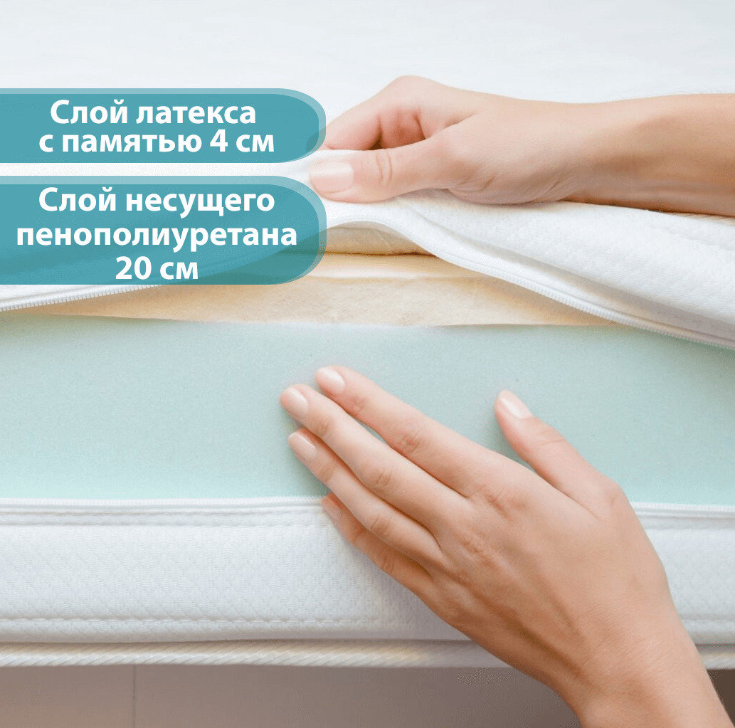 Матрас, Топпер-наматрасник ЭКО+, Беспружинный, 160х200 см