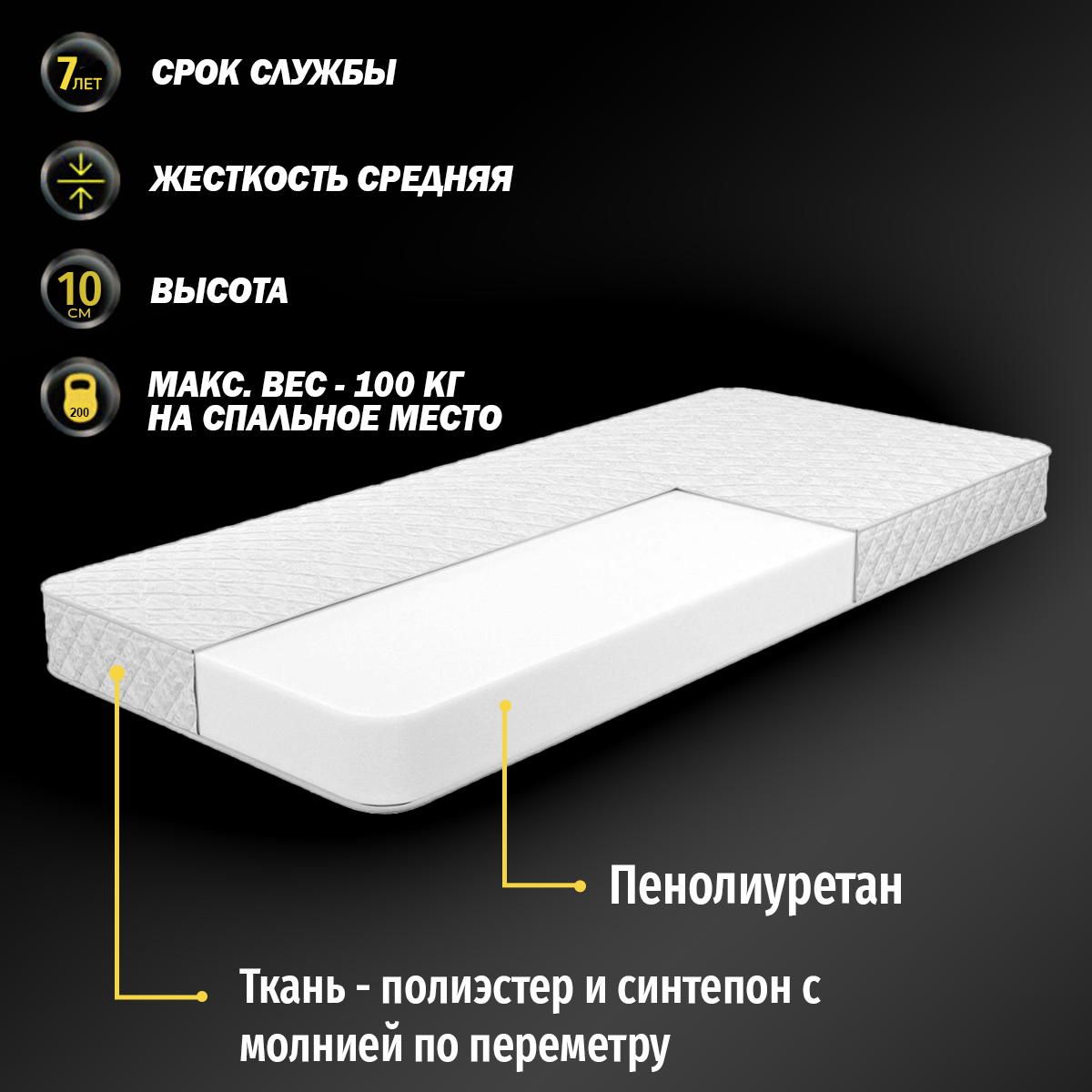 Матрас 70/190, Беспружинный, 70х190 см