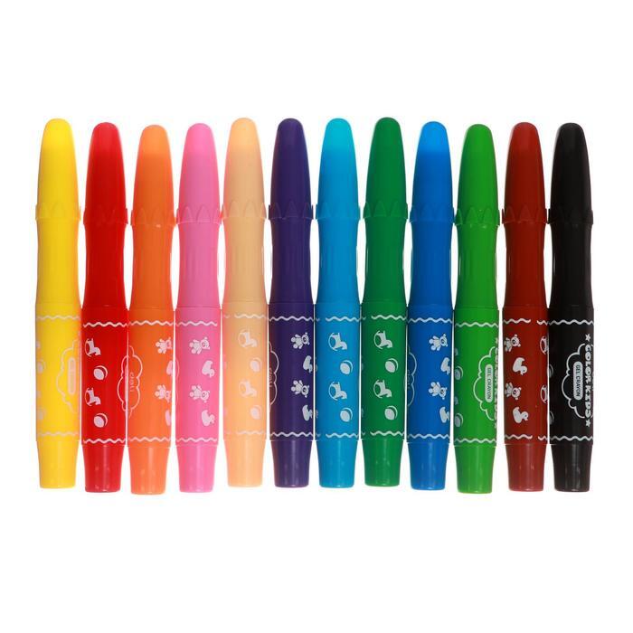 Мелки восковые детские пластиковые ударопрочные 12 цветов