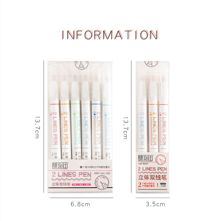 A 6 шт художественные рисовальные цвет двойная линия маркеры ручная учетную запись ручки