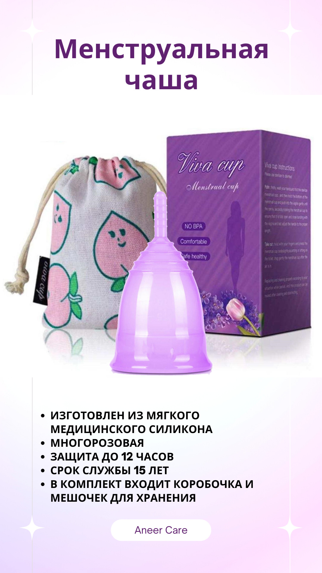 менструальная чаша L размер 2 штуки, полная упаковка, складная чаша