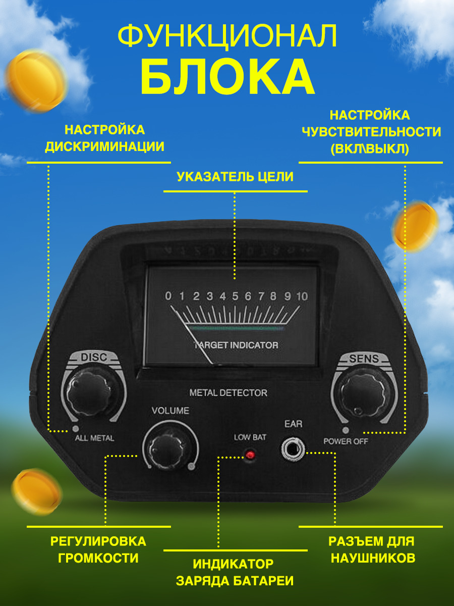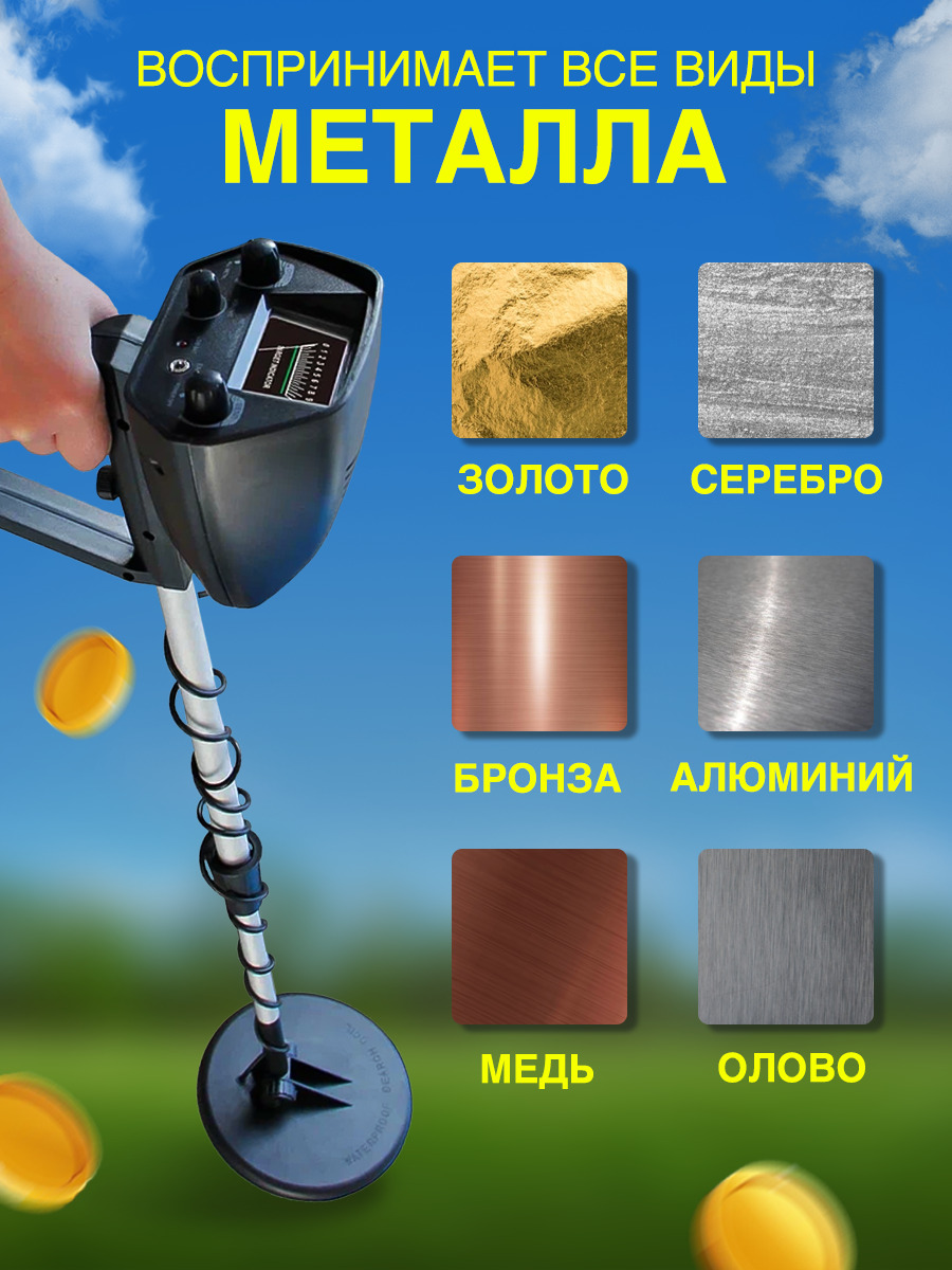 Металлоискатель GС-1065 для начинающих, грунтовый с дикриминацией/ МД для поиска монет, золота, ювелирных изделий, чермета